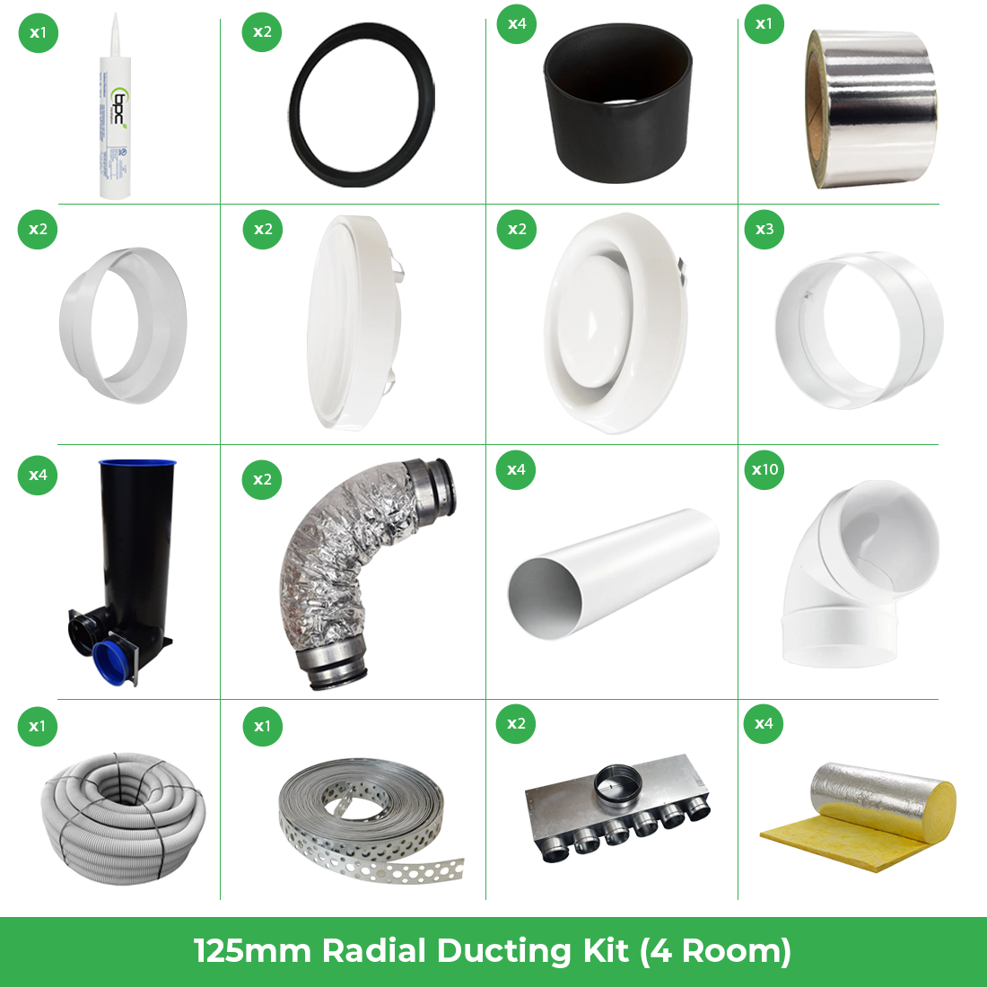 This kit provides a complete solution for setting up an efficient and noise-controlled ventilation system in residential and commercial properties.