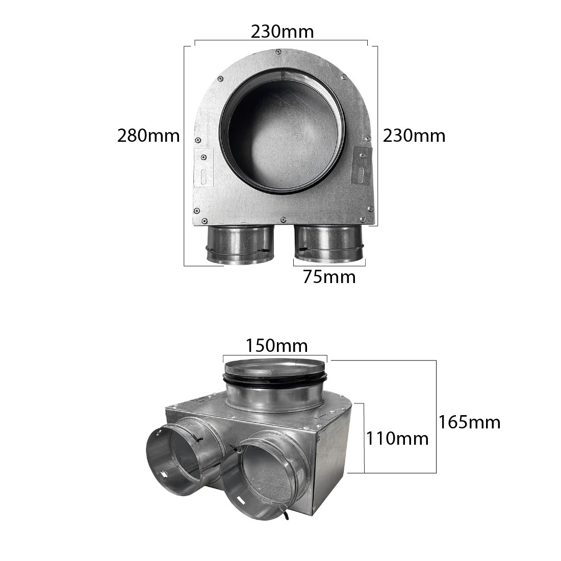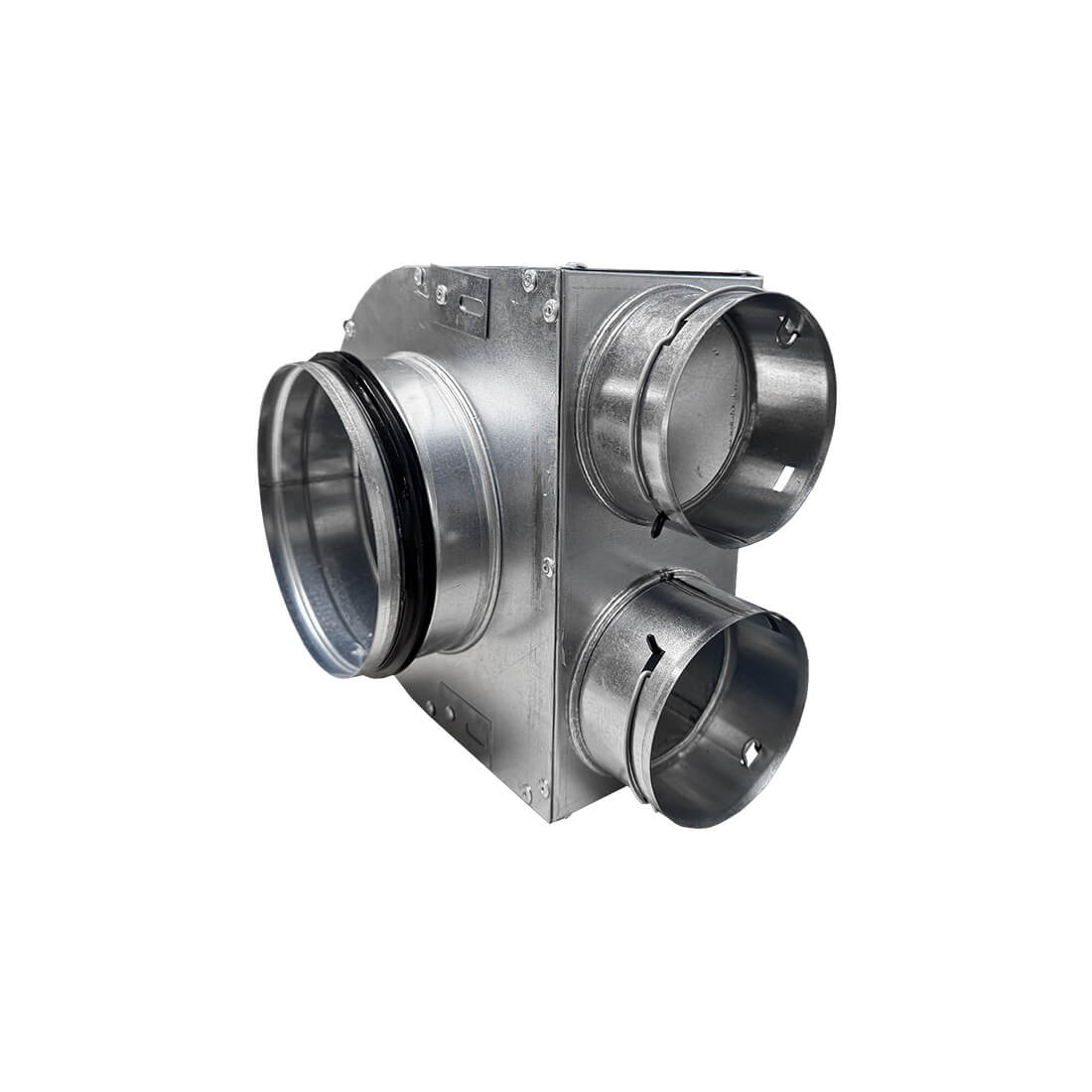Quiet-Vent metal 90mm Plenum with Short 150mm Male Spigot with Seal