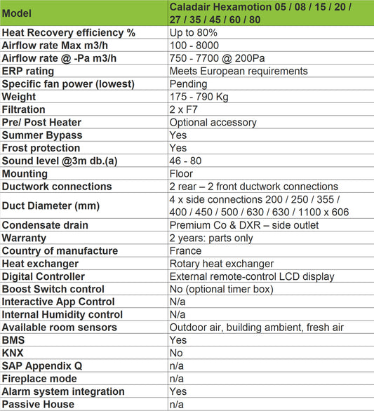 Zehnder Caladair Commercial Hexamotion Heat Recovery Ventilation Units