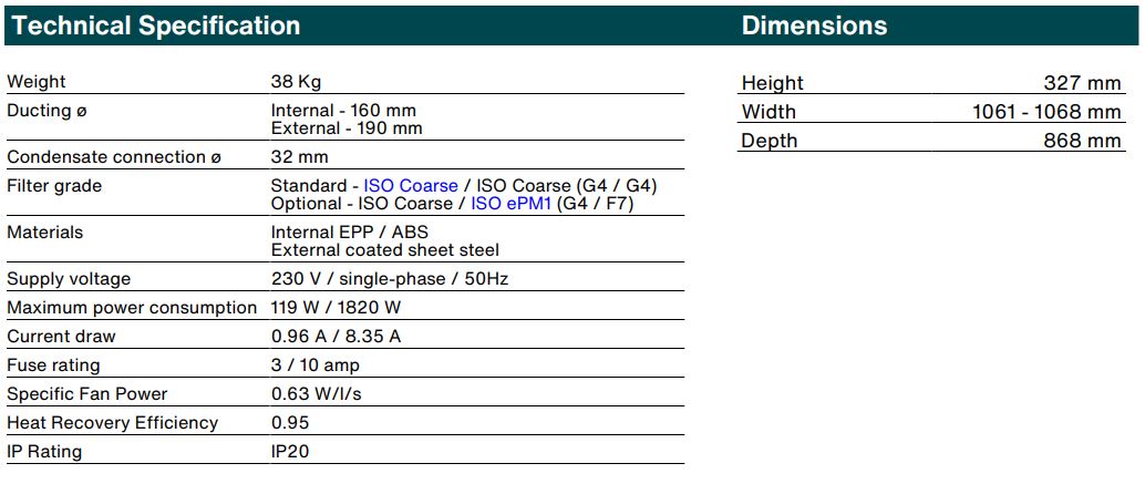 Efficient Heat Recovery – 100% modulating summer bypass with high heat recovery efficiency.
