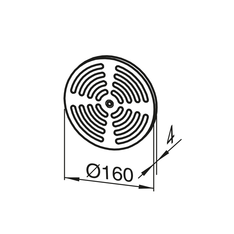 The Ø160mm floor grille is made from satin finish stainless steel, making it suitable for both supply and extract air systems. It features an adjustable air volume control via a setting disc and is designed for secure installation with spring fittings for mounting to the floor outlet (9041142).