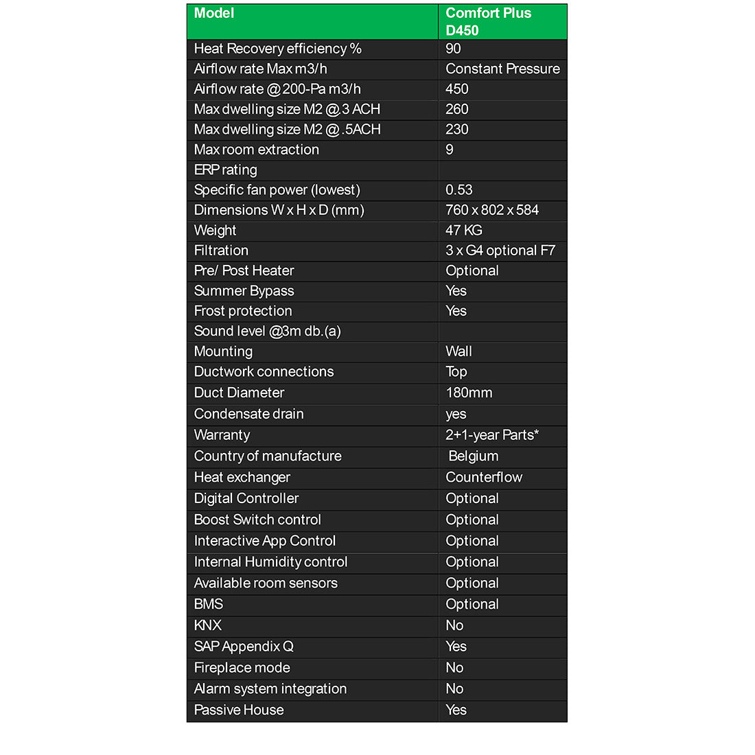 The DucoBox Energy Comfort Plus D450 is a high quality MVHR unit manufactured in Belgium and developed with the aim of guaranteeing an even quieter operation with an option of 2 zone ventilation