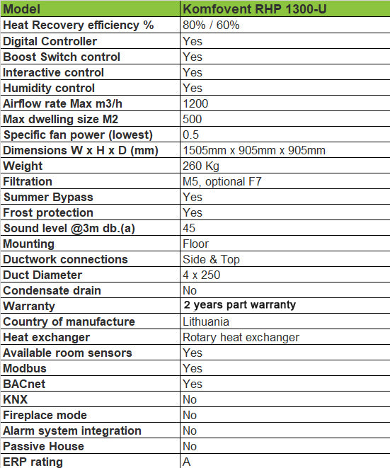 Komfovent RHP 1200-UV Air Handling Unit - RHP 1200 9.3/7.9 UV C5