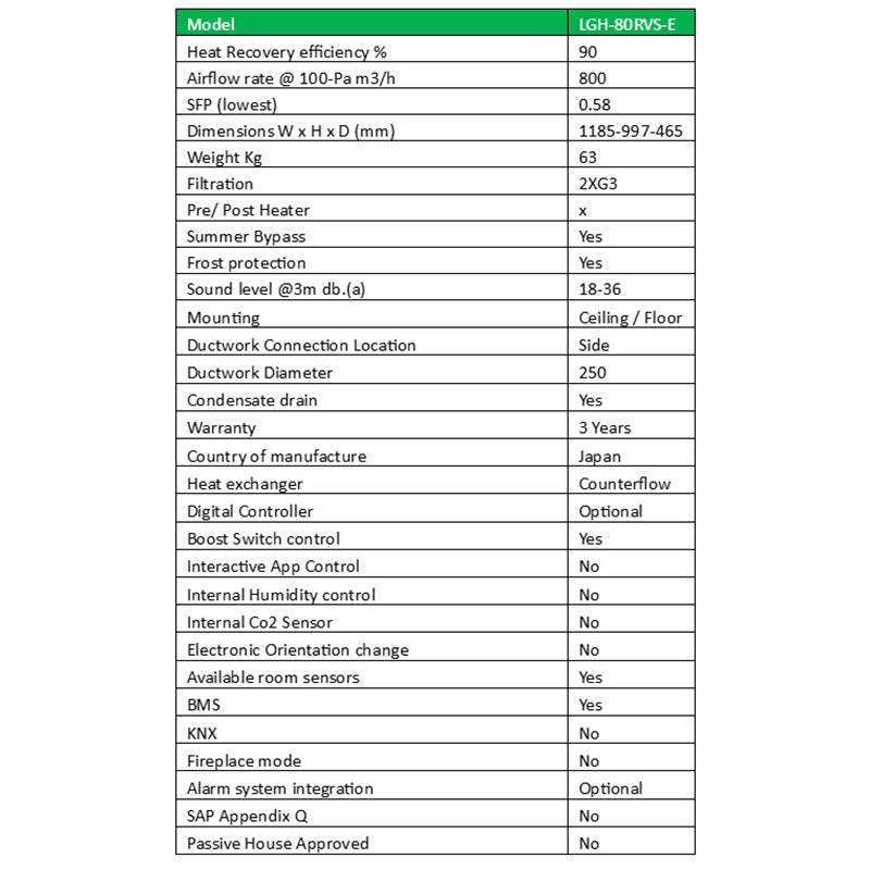 Key features- Mitsubishi Lossnay LGH-80 RVS-E