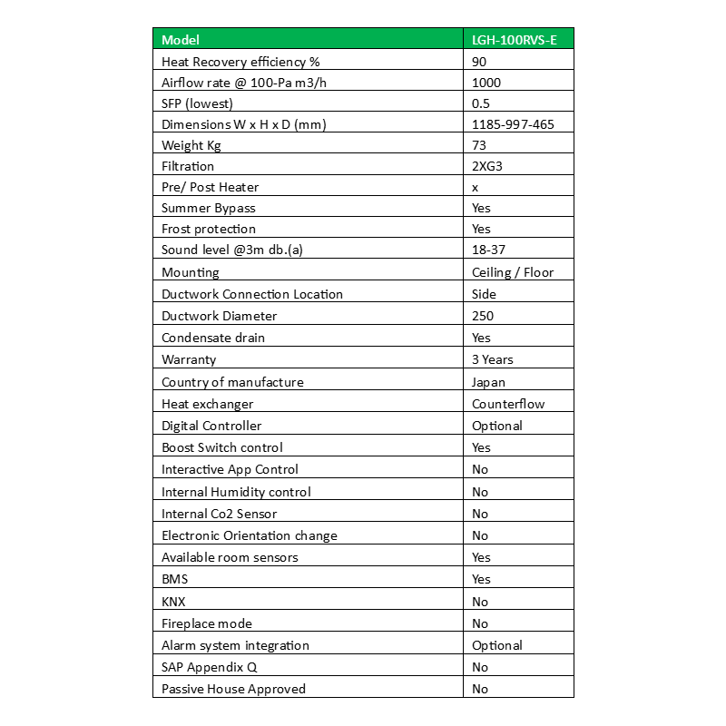 Key features- Mitsubishi Lossnay LGH-100 RVS-E