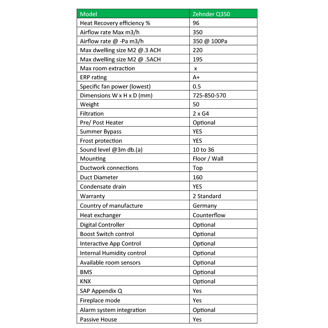 The Zender Q range units are passive house approved and SAP appendix Q listed